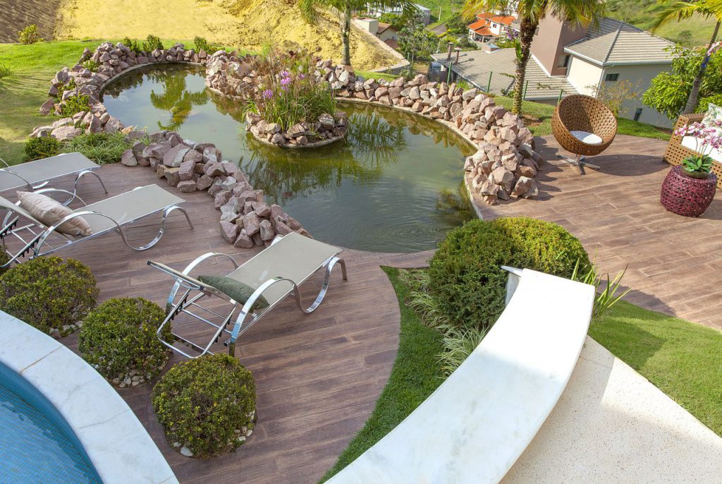 E ao seu redor são colocadas plantas aquáticas regenerativas, que, além de fazerem ornamentação, ajudam no processo de purificação da água da piscina. É mais uma possibilidade que você pode considerar, mesmo exigindo muito mais manutenção.
