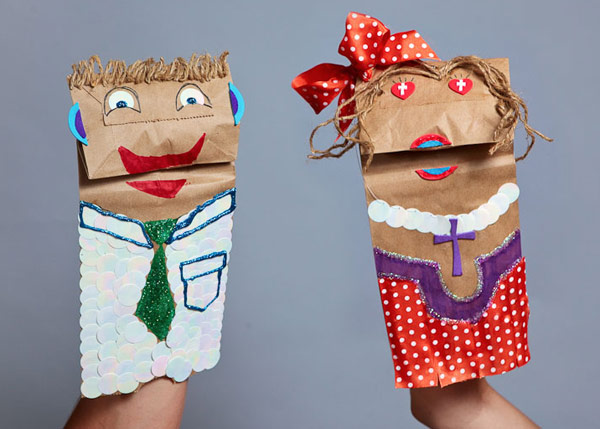 Um teatro de fantoches, por exemplo, é muito simples de fazer: basta você ter materiais como sacos de papel, barbante e tinta para montar os personagens e depois disso é só soltar a imaginação.