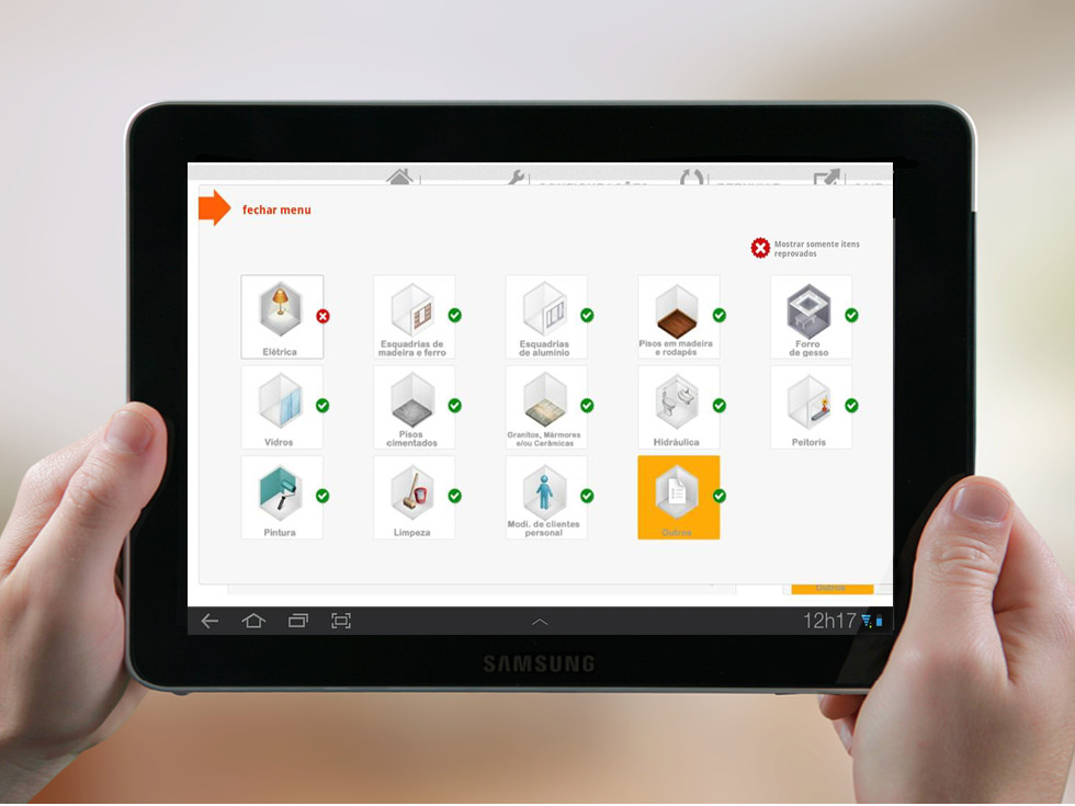 aplicativo para vistoria de imóveis em parceria com a Samsung. Criado para substituir o Termo de Vistoria impresso, o app para Android visa facilitar o trabalho dos engenheiros da companhia e garantir maior transparência aos clientes, que poderão ter as não-conformidades registradas em fotos, vídeos ou áudio - tudo enviado direto do tablet para o sistema da TECNISA.