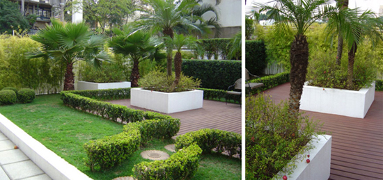 driblar esta limitação, muitos paisagistas criam caixas altas de alvenaria, como as da foto. Neste terraço