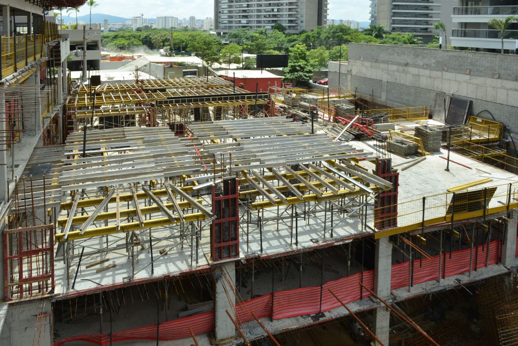 Estrutura Embasamento: trecho 2 finalizado do 1º sub solo até o 2º pavimento. - Trecho 3 1 sub solo finalizado - térreo em andamento.