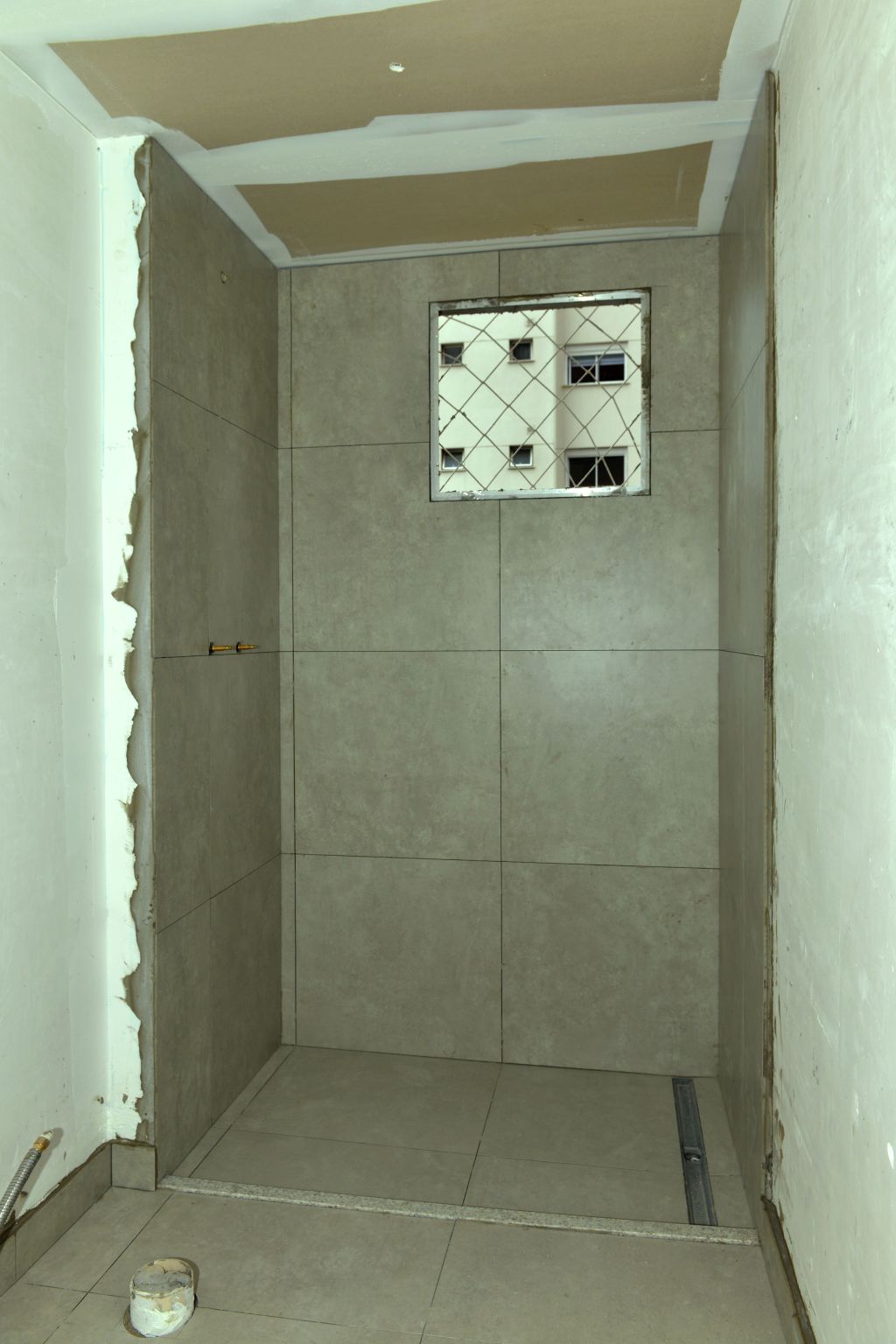 Acabamentos: Torre 1: Forro 5º pavimento finalizado + Torre 2: Forro 6° Pavimento em execução + Embasamento: Chapisco 1° sub solo finalizado - térreo em execução.