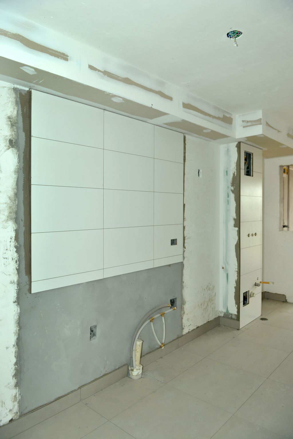 Acabamentos: Torre 1: Forro 3º pavimento. - Concluído + Torre 2: Forro 5°Pavimento. - em execução + Embasamento: Chapisco 1° sub solo em Execução.
