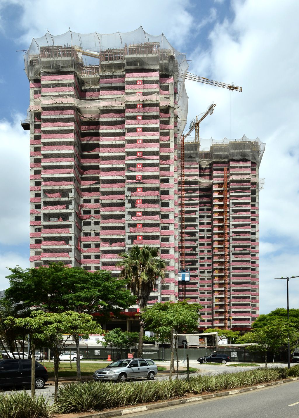 Estrutura: Bloco de fundação embasamento, Torre A e B em execução.