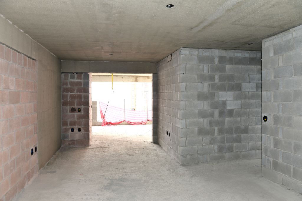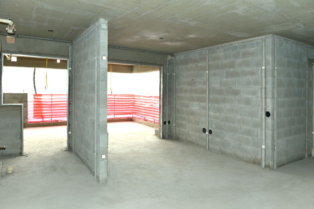 Acabamentos: Torre 1: Emboço 5º pavimento concluído + Torre 2: emboço 9º pavimento em execução + Embasamento: Chapisco 1 sub solo e Térreo em execução.
