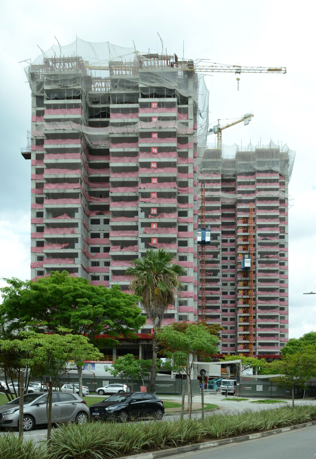 Estrutura: Torre 1: 21° Pavimento - em execução + Torre 2: 25° Pavimento. - Em Execução + Embasamento: 1SS Trecho 4 em execução / 1 º pavimento trecho 3 finalizado.