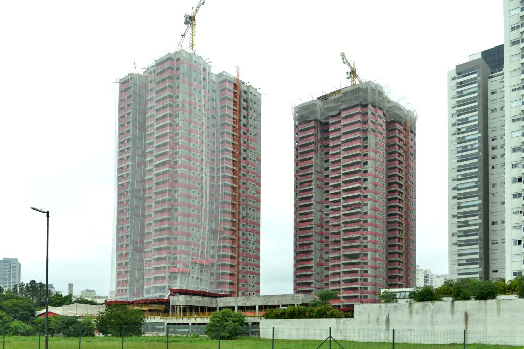 Alvenaria: Torre 1: 22° pavimento finalizado | Torre 2: 24° pavimento finalizado | Embasamento: 1º pavimento e térreo em andamento.